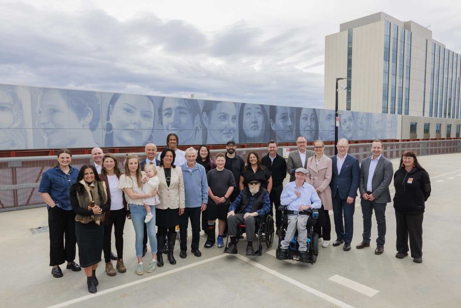 From youngest to oldest, the mural features 14 local faces and adds a meaningful expression of the community of Geelong to the waterfront development. Created over three months, the mural presents a connection to Wadawurrung history and the community’s evolving storyline.